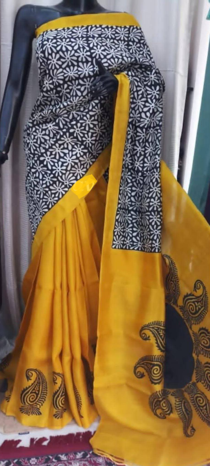 This is a beautiful murshidabadi 3-ply block printed pure silk saree