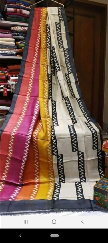 & Free ShippingThis is a beautiful murshidabadi 3-ply block printed pure silk saree